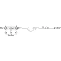 Smiths Medical #MX7222SC, 2-Gang Hi-Flow 4-Way Stopcocks with 39" Extension set, Y Injection Site, Pinch Clamp, and Male Slide Swivel, 25/CS
